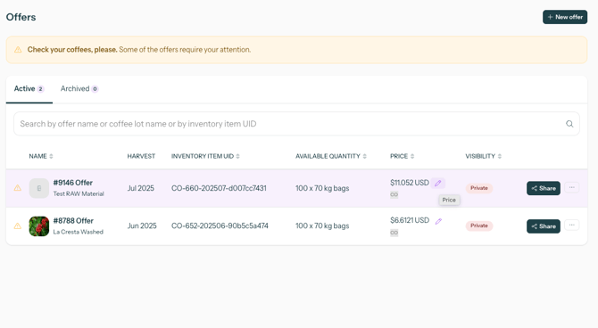If you want to edit the price on your offers